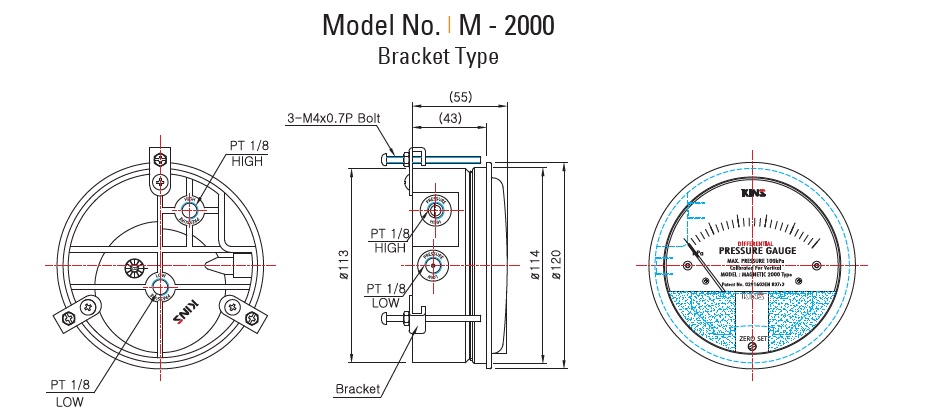 MAG-2000 차압계는 압력접속구가 저압측 과 고압측 가 있으며 개소의 L( ) H( ) 2 압력차 차압 를 지시하는 것으로써 차압의 측정은 물론 그 측정 () , 된 차압으로 측정에 사용할 수 있습니다.