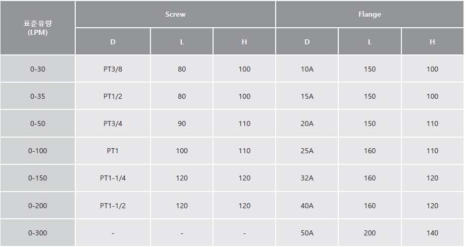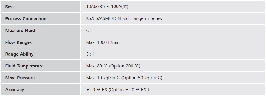 √ 표준유량은 Oil 의 점도가 150 c.s.t 일 경우임.