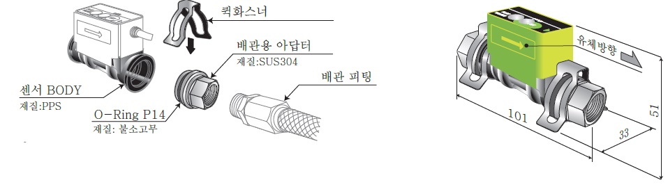 ![]() 전 기 배 선 ![]() 배 관 접 속 ![]() 센서BODY는 수지제로 되어있기 때문에 배관작업 시에 센서에 직접 부하가 걸리지 않도록 주의해 주십시오. 또한, 배관으로부터 분리할 때에는 퀵화스너를 분리한 후에 배관용 아답터를 분리해 주십시오. 조립 시에는 그 역순으로 해 주십시오. 제품 사양 설 정