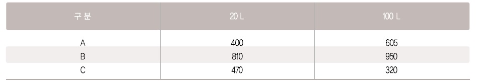 ※ 기준탱크한눈금의값: 10L, 20L(10 ㎖)