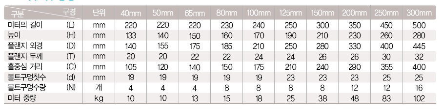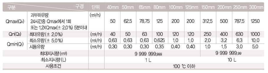 ![]() 수량계 NEW -TW 제품 특징 ▶ 유리/ 동을 사용한 방진 방수로 밀봉된 카운터(IP68) ▶ 7자리 Digit counter와 아날로그 카운터 ※40~125mm - 3개 ※150~300mm - 2개 ▶ 2종류의 pulser를 선택적으로 장착 가능 ※pulse(CT TYPE(O)-1P-100L, CN TYPE(X) ▶ Location, pulser ports 및 pulse값은 식별과 설치가 용이하게 문자판에 인쇄되어 있음 재질 ■ 몸통 → 주철 ■ 내갑세트 →엔지니어링플라스틱 ■ 로터(터빈) →엔지니어링플라스틱 ■ 기타부품 → 스테인리스스틸