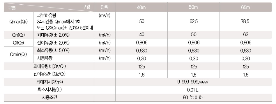 특징 및 작동원리 ■ RF 통신방식으로유선, 무선원격검침가능 ■ 내마모성이강하여 영구적이며 재사용이 가능한 친환경 제품이다. ■ 검침값원격송신가능 ■ 밀폐 봉인된 지시부(IP 68등급)로 수포현상 완전 제거함. ■ 외부검침기의현지침값표시 ■ 유체역학에의한균형유지하는회전ROTOR 적용함. ■ PDA 검침가능 ■ 역방향, 누수(72시간사용않을시)발생감지기능 ■ 30일분DATA가지속적으로저장 ■ 선택사항: 순간유량표시, 표시형단말기 ■ 스테인리스소재로제작 (무독성, 유해화학무반응/내, 외부내부식성이강함) 성능표