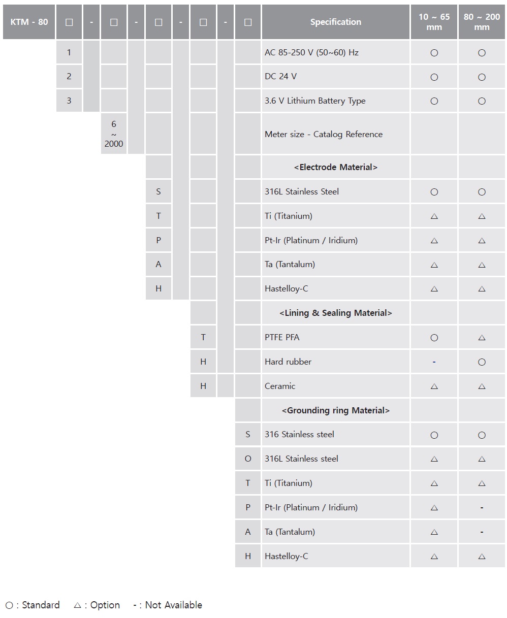 ■ STRUCTURAL DRAWING ■ STANDARD MATERIAL ![]() ■ BASIC CODE ![]() ■ MODEL CODE [KTM-800-□-□-□-□-□-□-□-□] ![]() ■ FLOW RANGES & DIMENSIONS ![]() ■ TYPE SPECIFICATION CODE ![]() ■ DRAWING OF INSTALLATION √ 정확한 유량 측정을 배관환경에 따라 직관부를 형성해 주는 것이 중요합니다. ![]() ■ MOUNTING POSITION OF LCD DISPLAY ![]()
