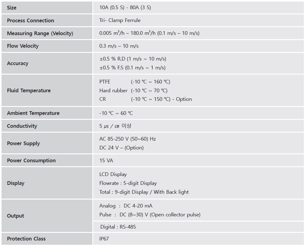제품 소개 위생용 전자 유량계 KTMS-500