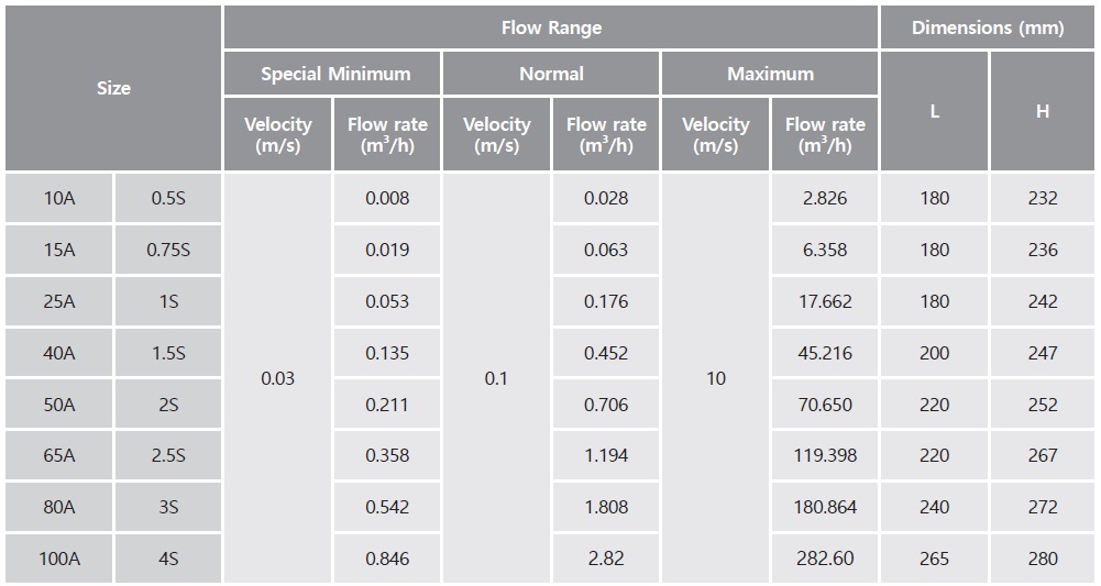 ■ FLOW RANGES & DIMENSIONS