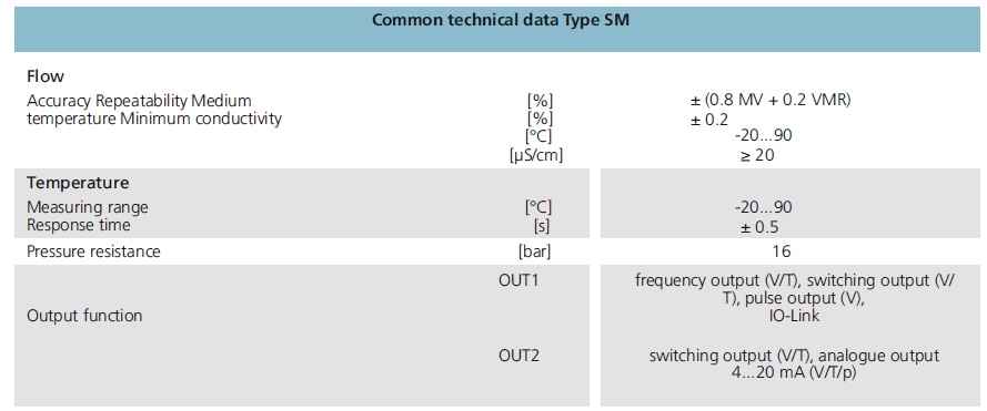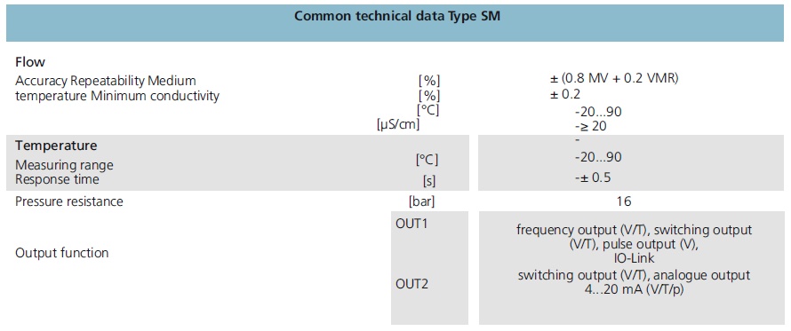 자기 유도형 유량계 센서; PNP/NPN; 스위칭 시그널; 아날로그 시그널; 펄스 시그널; IO-Link; 주파수 신호; 측정범위