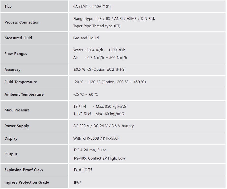 제품 소개 분리형 터빈 유량계 KTR-550-S-F
