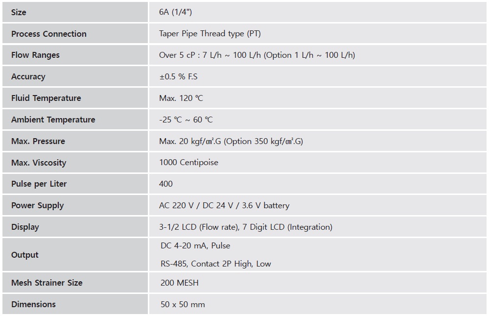 제품 소개 미소 용적식 유량계 KTP-100는 극미소유량용 오발기어 (Oval Gear)식 용적 유량계로 유체의 에너지를 이용하여 2개의 타원형 톱니바퀴를 연속적으로 동작시켜 유량을 측정합니다.
