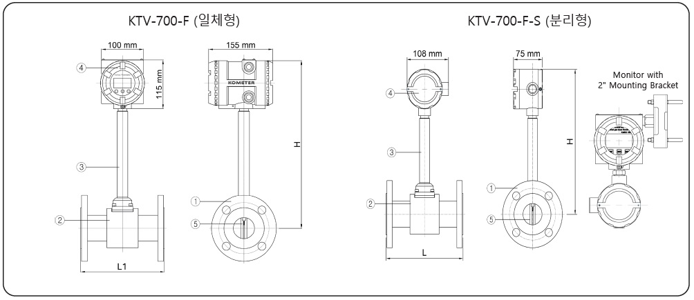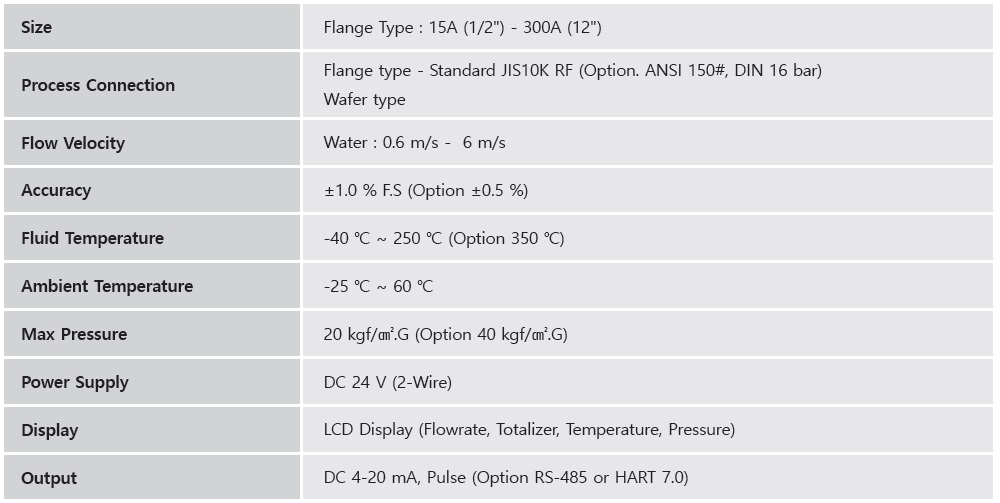 제품 소개 볼텍스 유량계 KVP-700은 액체, 건식 또는 습식 가스와 포화 또는 과열 증기 (스팀) 의 유량 측정에 적합한 와류식 유량계 이며 높은 온도의 유체에서도 높은 정밀도를 유지합니다.