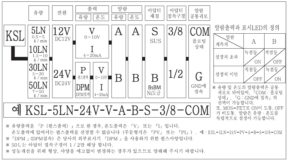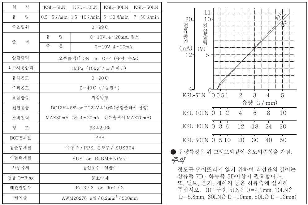 제품 특징 ● 장비 냉각수 모니터링 용 센서로서 전 세계 반도체 및 LCD 장비 제조업체 에 총 6 만 대가 공급되었습니다. ● 유량과 온도를 측정하고 표시합니다. ● 90 °C의 고온 수와 함께 사용할 수 있습니다. ● 아날로그 출력 ● 알람 출력 ● 디지털 표시