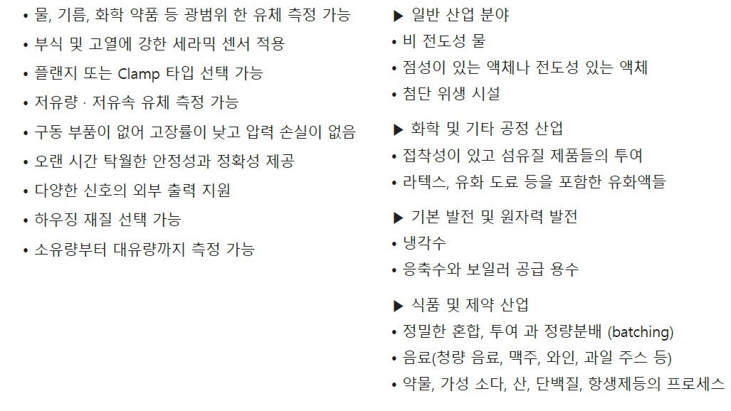 초음파 유량계 GSA-250 은 구동부가 없어 내구성이 우수하며 수명이 길고 기계적 유량계보다 훨씬 더 큰 유량 비율(100 : 1)을 제공합니다. 또한 진동 및 소음이 심한 곳에서도 사용 가능하며 유지 보수가 쉽고 간단하여 각종 산업 현장에 널리 사용되고 있습니다.