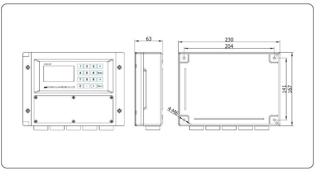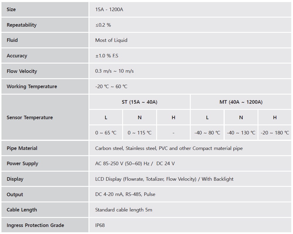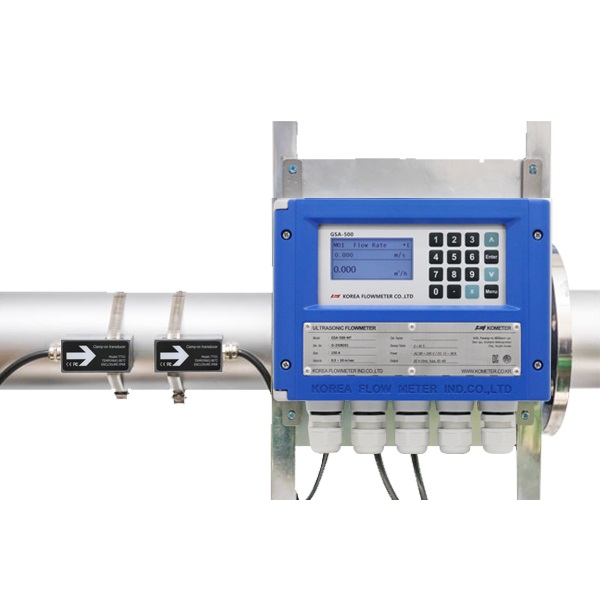 ![]() 분리형 초음파 유량계 GSA-500 제품 소개 분리형 초음파 유량계 GSA-500는 초음파 센서를 배관 외부에 부착하여 유량을 측정하는 액체용 초음파 유량계로써 높은 정확도와 재현성을 가지고 있는 고정밀 계측기입니다. 측정 가능한 배관의 직경은 15A부터 6000A까지로 매우 광범위하고 현장에서 순시 및 적산 유량 지시는 물론 여러 종류의 신호를 외부로 출력 할 수 있게 특수 설계되어 사용자의 환경에 따라 제어 · 응용하기에 적합 합니다. 분리형 초음파 유량계 GSA-500 은 배관을 절단하지 않고 외부에서 유량을 측정하므로 최초설치나 이전 설치가 매우 쉽고, 설치를 위해 단수 할 필요가 없어 편리 합니다. 또한 구동부가 없어 내구성이 우수하며 수명이 진동 및 소음이 심한 곳에서도 사용 가능하며 유지 보수가 쉽고 간단하여 각종 산업 현장에 널리 사용되고 있습니다.