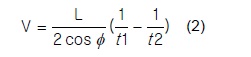 공식에서 : tup : 음파가 유체에서 현재 카운터로 전파하는 시간. tdown : 음파가 전류를 따라 유체에서 전파하는 시간. Cf : 음파가 유체 내에서 이동하는 속도. Vm : 유체의 축 방향 평균 속도; Ø : 채널 각도; ![]() Fig. 1 일반적인 개략도 등식 (1)을 사용하여 유체 흐름 속도의 식을 구할 수 있다. ![]() 복수의 채널의 측정 된 유체 유속 Vi (i = 1,2, ... k); 파이프 라인의 평균 유속 V의 추정값은 수학적 함수 관계를 결합하여 구할 수 있으며, 체적 유량 qv는 식 (3)과 같이 추정 된 값에 유량 면적 A를 곱하여 얻을 수있다.