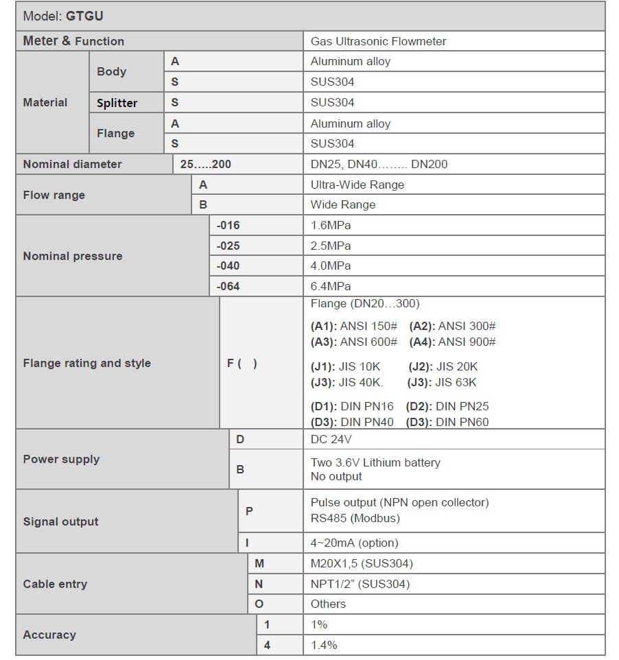 1. 제품 소개 가스 초음파 유량계 GTGU Series는 독일의 첨단기술에 의해 생산된다. 모든 핵심 부품은 고신뢰성과 긴 사용 수명을 특징으로 한 오리지널 장비에서 수입된다. 높은 정밀도와 높은 신뢰성을 갖춘 새로운 유형의 정밀 측정기입니다. 도시 가스, 석유, 화학 산업, 전력, 야금 및 기타 산업의 가스 유량 측정에 적용 할 수 있습니다. GTGU series_Gas 초음파 유량계는 고유 한 다중화 이중 채널 (DN25 ~ 80) 및 다중 채널 6 채널(DN100 ~ 200)으로 설계되어 와류 및 비대칭 흐름의 영향을 제거하고, 다중 채널에 중복 백업 채널을 추가하며, 신뢰성을 향상시킵니다. 시스템의국제 표준 ISO CD 17089, 우리 표준 A.G.A를 준수하십시오. Report No.9. 2. 주요 특징 ⚫독일첨단기술로 제작 ⚫멀티플렉스 듀얼 채널 및 6채널 측정 ⚫에디 전류 및 비대칭 흐름 감지 ⚫전기장과 자기장의 적층 차폐, 고소음 내성 ⚫제로 드리프트 자동 보정, 정확도는 환경의 영향을 받지 않음 ⚫측정 정확도 등급 : 1.0 ⚫국제표준 ISO CD 17089에 부합 ⚫표준 A.G.A.를 준수하십시오.보고서 제9호 ⚫초고범위비: 1:600 ⚫울트라-로우 "0" 시작 유량 ⚫계량 범위는 루트 계량기와 터빈 계량기를 포함할 수 있다. ⚫이중 백업 리튬 배터리 전원 공급 장치 ⚫고정밀 온도 및 압력 보정, 부피 보정 ⚫다양한 가스 작동 조건 및 표준 온도와 압력의 지능형 전환 ⚫대용량 스토리지, 1년간 데이터 저장 가능 ⚫지능형 고장 감지, 고장 경보 ⚫유지보수가 필요 없는 청소, 긴 사용 수명 ⚫측정기를 350도 회전시켜 쉽게 읽을 수 있다. ⚫기계식 카운터 추가, 데이터는 절대 손실되지 않는다. 3. 작동 원리 3.1 초음파 유량계의 기본 작동 원리 초음파 유량계는 유량 매체에서 음파 전파 시간과 유량과의 관계를 측정하는 원리에 기초한다. 축 평균 속도(Vm)에 의해 결정된다고 생각된다.