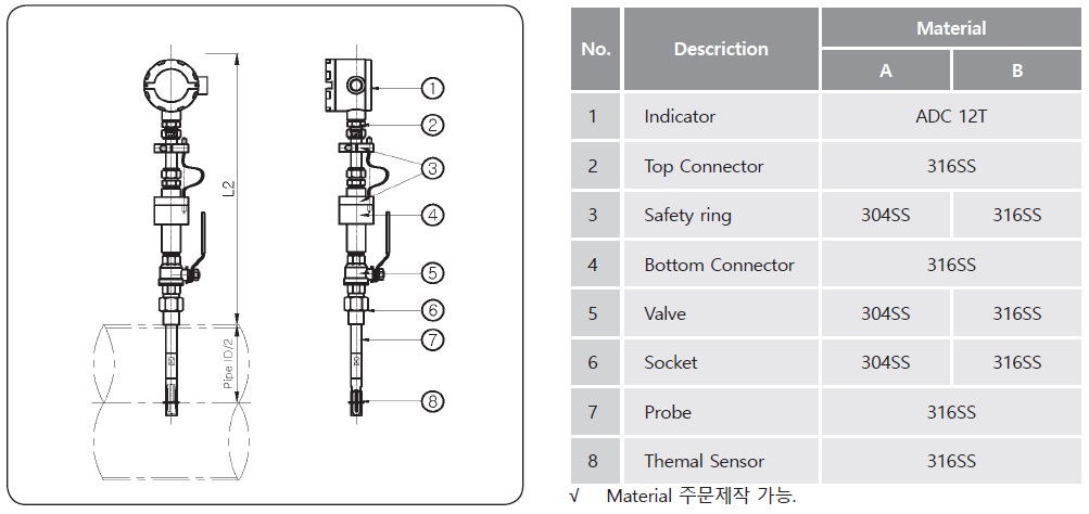 제품 소개 분리형 삽입 열식 질량 유량계 KMSG-000MI
