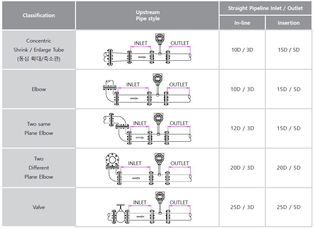 ■ Recommended inlet & outlet runs (without flow conditioner)