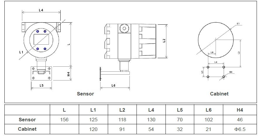 보상 계산이 필요하지 않습니다. 이 구조는 센서와 송신기의 두 부분으로 구성됩니다.