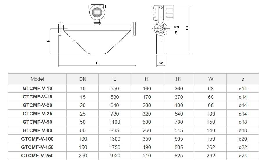 GTCMF-V-Series Coriolis MassFlow Meter
