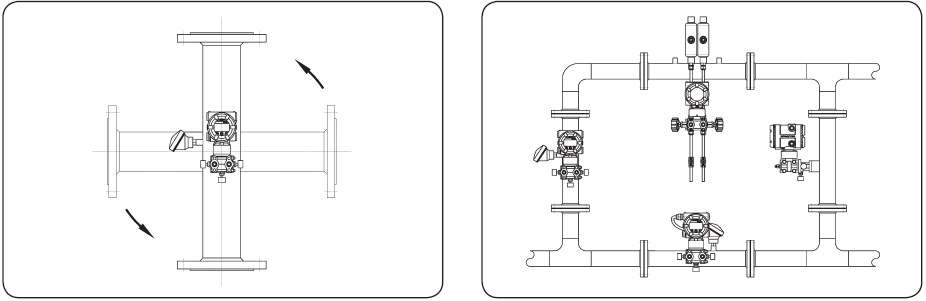 유량계 설치장소가 유량판독이 힘든 장소일 경우에 그림과 같이 커넥터를 분리시켜 판독이 용이하게 할 수 있다.