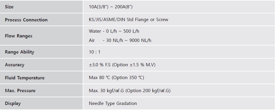 금속관 면적 유량계 MGP품명 소개 금속관 면적 유량계 MGP