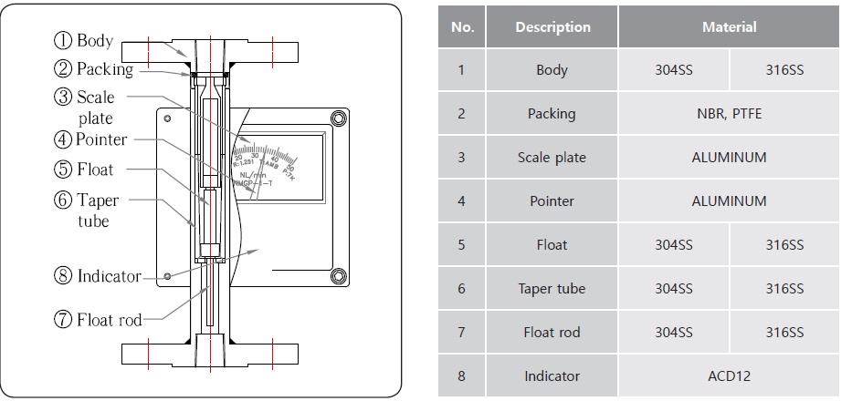 금속관 면적 유량계 NMGP품명: 금속관 면적 유량계NMGP