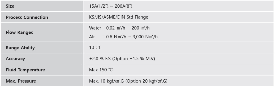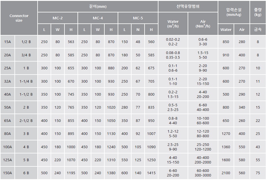 제품 소개 금속관 면적 유량계 MC Series 는 지시부 하단에 에어챔버를 설치하여 측정부로부터 지시부 측의 유체 유입 방지 기능을 더욱 견고하게 한 금속관 면적 유량계 입니다. 불투명한 액체 및 폐수 등 악성 유체의 측정에 널리 사용되어 폐수용 유량계라고도 불리고 있습니다. 대부분의 유체(액체⦁기체)에 적용 할 수 있고 구조가 간단하여 쉽게 현장에 설치가 가능합니다. 바디 재질은 스테인레스 기본 제작되고 이외에 다양한 재질로도 제작 가능합니다. 제품 특징 ■ MC Series General Specifications