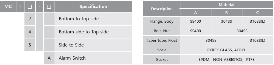 금속관 면적 유량계 MC제품 소개 금속관 면적 유량계 MC