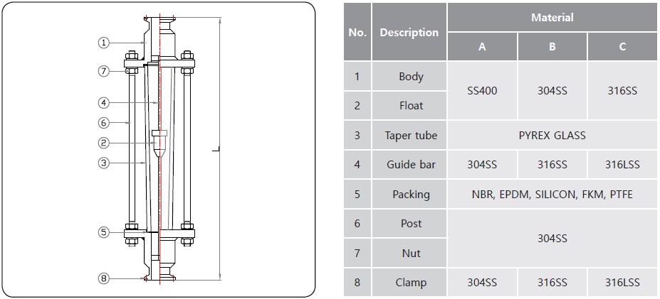 유리관 면적 유량계 GA-60(Sanitary Clamp)