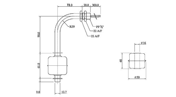 ▶ 수위의 경보, 제어용으로 사용되는 레벨 스위치 입니다.