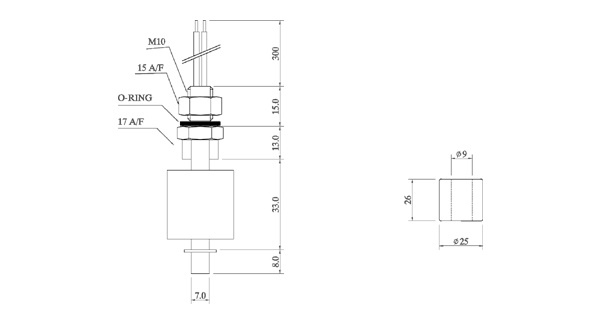 DLF-503 Level Switch는 리드 스위치((Dry Reed Switch)와 자석(Magnet)를 이용하여 동작하는 센서입니다.