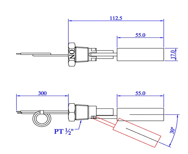 DLF-1 Level Switch는 리드 스위치((Dry Reed Switch)와 자석(Magnet)를 이용하여 동작하는 센서입니다.