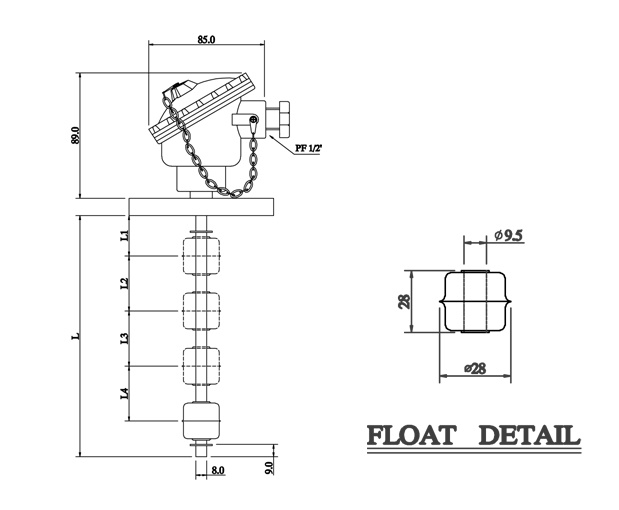 DLF - 4P(POINT) - 1S(SUS) - FH 는 1개의 후루트(Float)로 4개의 접점(SPST) 출력을 제어 하는 레벨 스위치 입니다.