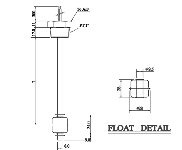 센서 외부 후루트(Float)는 부력에 의하여 동작되는데 후루트 내의 자석이 리드 시위치를 작동(On/Off)시키므로서