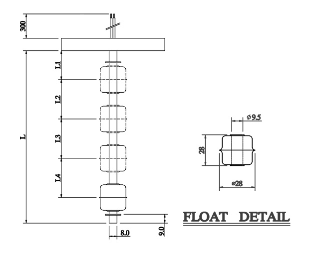 ▶ 수위의 경보, 제어용으로 사용되는 레벨 스위치 입니다.