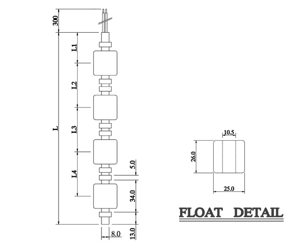 DLF-4P-4T Series Level Switch는 리드 스위치((Dry Reed Switch)와 자석(Magnet)를 이용하여 동작하는 센서입니다.