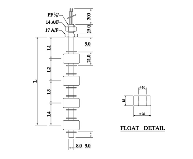 DLF-4P-4N Series Level Switch는 리드 스위치((Dry Reed Switch)와 자석(Magnet)를 이용하여 동작하는 센서입니다.