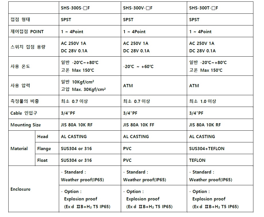 SHS-300제품소개 플로트식 레벨스위치 SHS-300