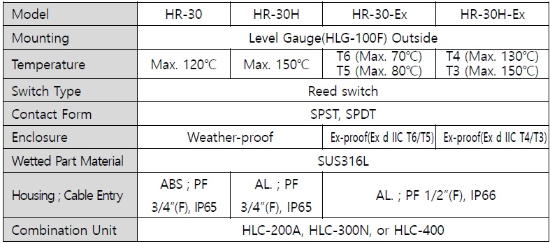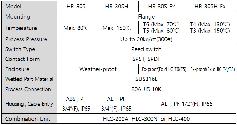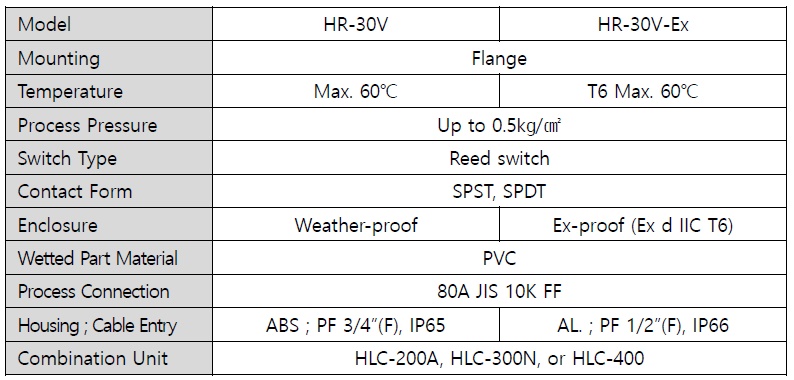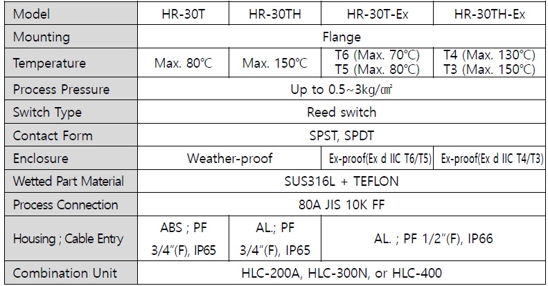 HR-30제품 소개 HR-30 플로트식 레벨스위치