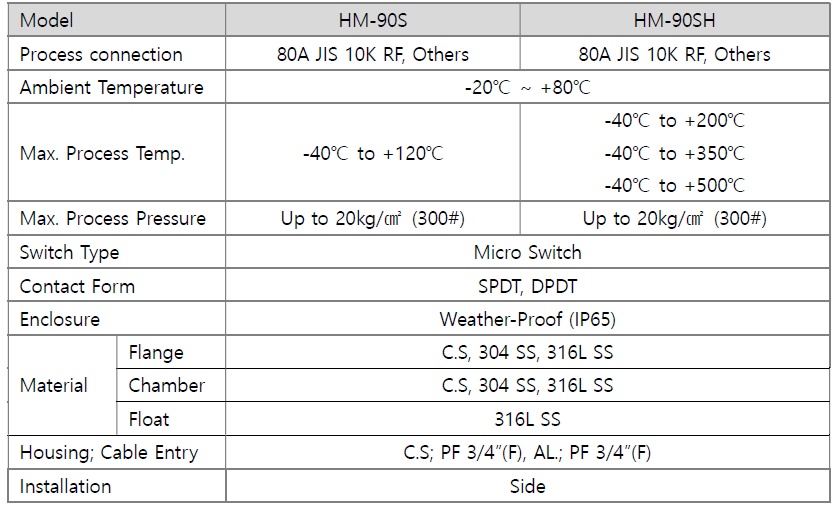HM-90S제품 소개 HM-90S 플로트식 레벨스위치