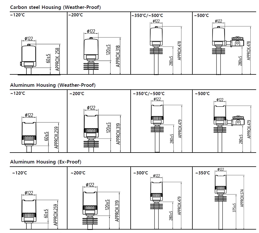 Ex-Proof ※ 제품의 Housing은 먼지나 물에 의한 손상을 방지할 수 있도록 설계되었으며, 필요에 따라 부식까지 고려한 Housing (EPOXY Coated)도 선택할 수 있습니다.