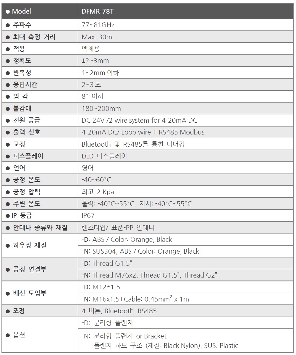 DFMR-78T series제품 소개 DFMR-78T series 레이더레벨 트랜스미터