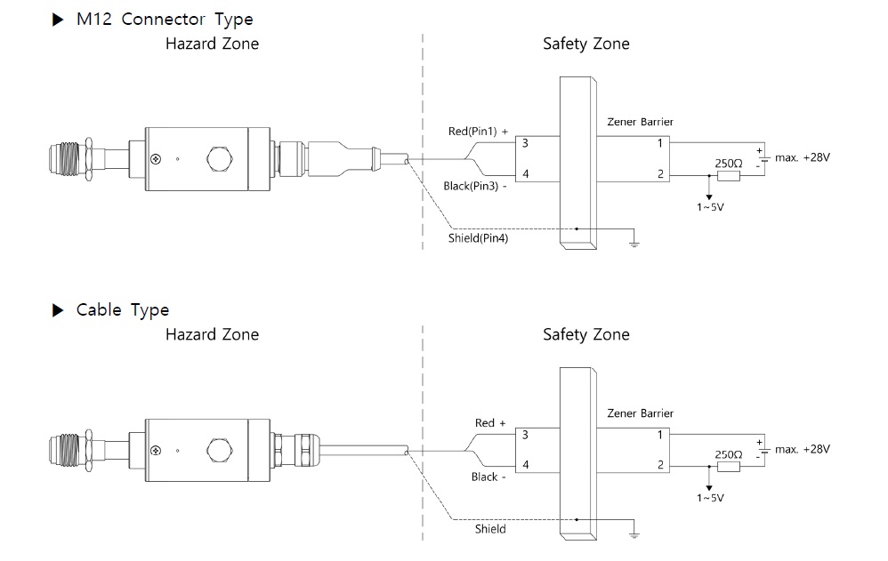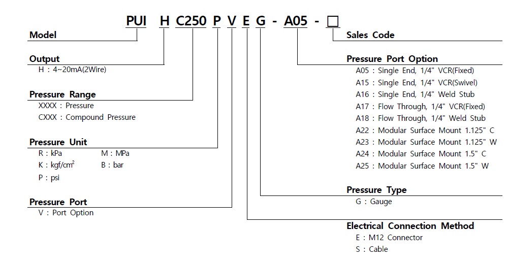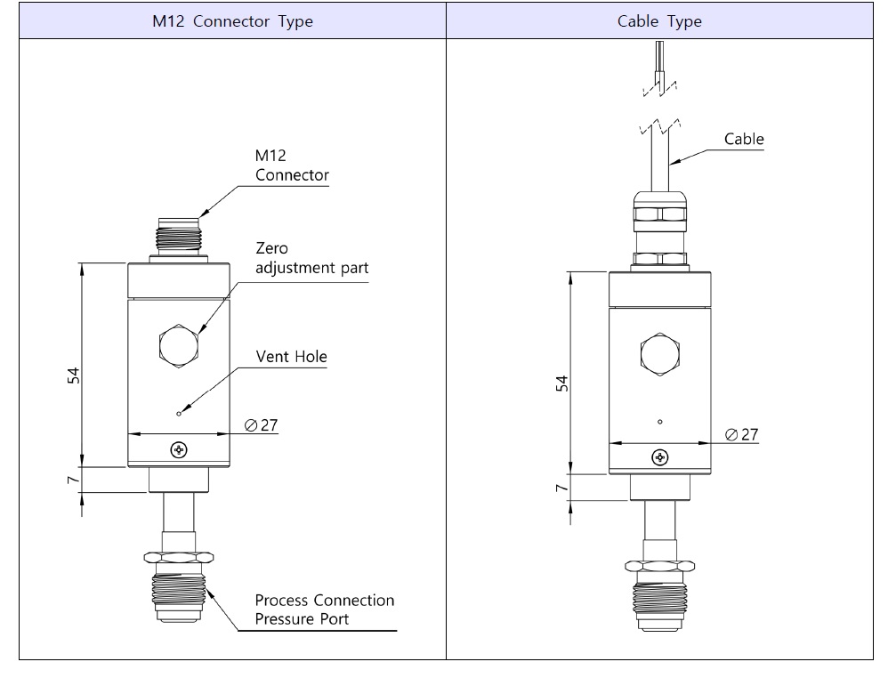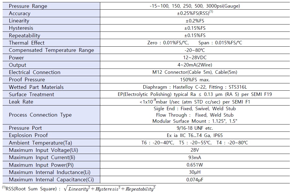 제품 설명 반도체용 압력센서 PUI모델은 본질안전 방폭(Ex ia IIC T6...T4 Ga, IP65) 인증을 받은 제품입니다. 접액부 재질은 하스텔로이 C22와 STS316L입니다. 2선식 4~20mA 출력으로 장거리 신호 전송이 가능합니다. 출력 단자는 M12 커넥터 타입 또는 케이블 타입으로 용도에 맞게 사용할 수 있습니다. 측면의 볼륨으로 영점 조절이 가능합니다. 특 징 ▶ ECEx, KCs, NEPSI(예정) 본질 안전 방폭 인증(Ex ia IIC T6...T4 Ga, IP65) ▶ CE 인증 ▶ ~20mA(2선식) 아날로그 출력 ▶ M12 커넥터 또는 케이블 ▶ 접촉부 재질: 하스텔로이 C22, STS316L 적용범위 ▶ 위험 구역 압력 모니터링 ▶ 가스 패널 ▶ 특수 및 벌크 가스 공급 ▶ 반도체 장비 사 양 ![]() Dimension ▶ 외부 ![]() ▶ 파이프 연결(프로세스 연결) ![]() ▶ Accessory ![]() 전기 연결 ![]() 모델명 표기 ![]() ![]() |
