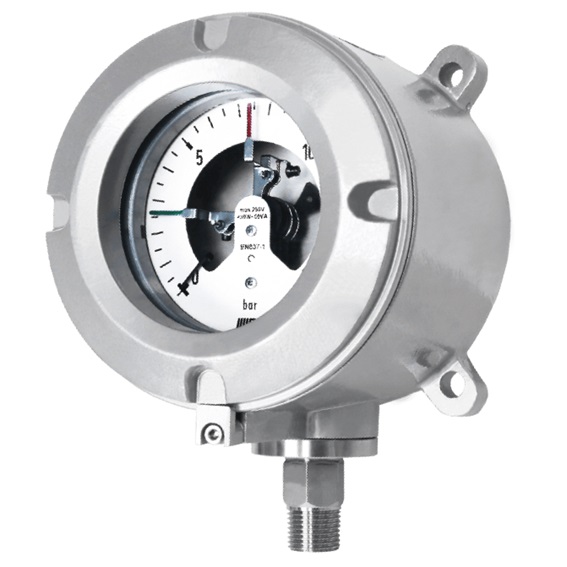 제품 설명 방폭 접점 압력계 P980 시리즈 방폭 표시 압력 스위치는 부식성 유체와 높은 압력을 측정합니다. 방폭 접점 압력계 P980 종류의 접점에 적합한 마이크로 접점 또는 전기 접점 블록이 장착되어 있습니다. 제품 제작사양 Nominal diameter 100 mm Accuracy Indicator : ±1.0% of full scale Alarm setting : ±3.0% of full scale Repeatability ±1.0% of adjustable range (Micro contact type) Adjustable range (MPa, kPa, bar) -0.1 ~ 0 to 0 ~ 2 MPa 0 ~ 0.1 to 0 ~ 35 MPa Working temperature Ambient : -20 ~ 65°C Fluid : Max. 100°C 제품 사양