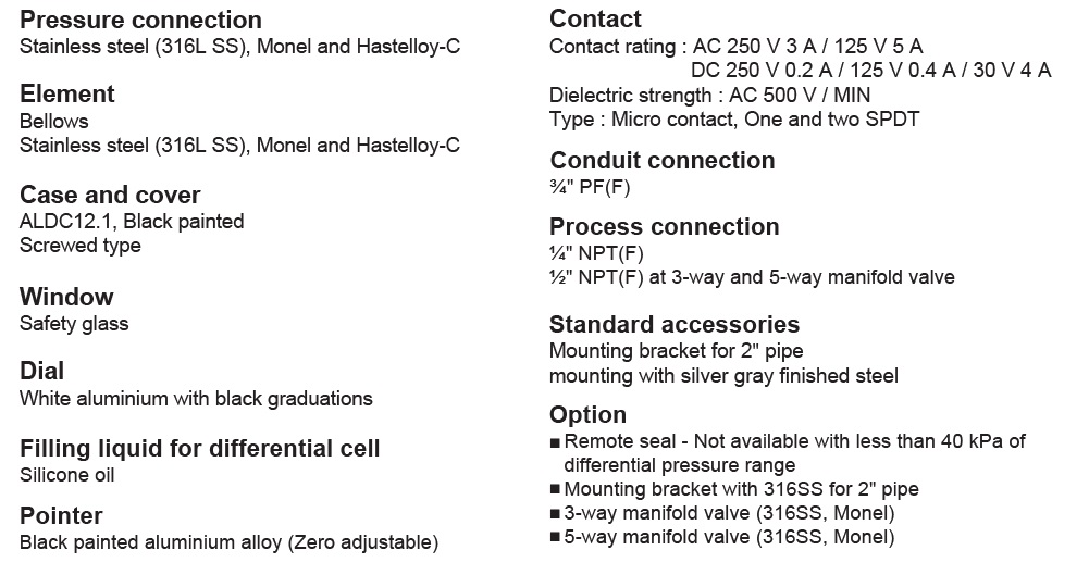 제품 소개 P641 차압 접점 압력계