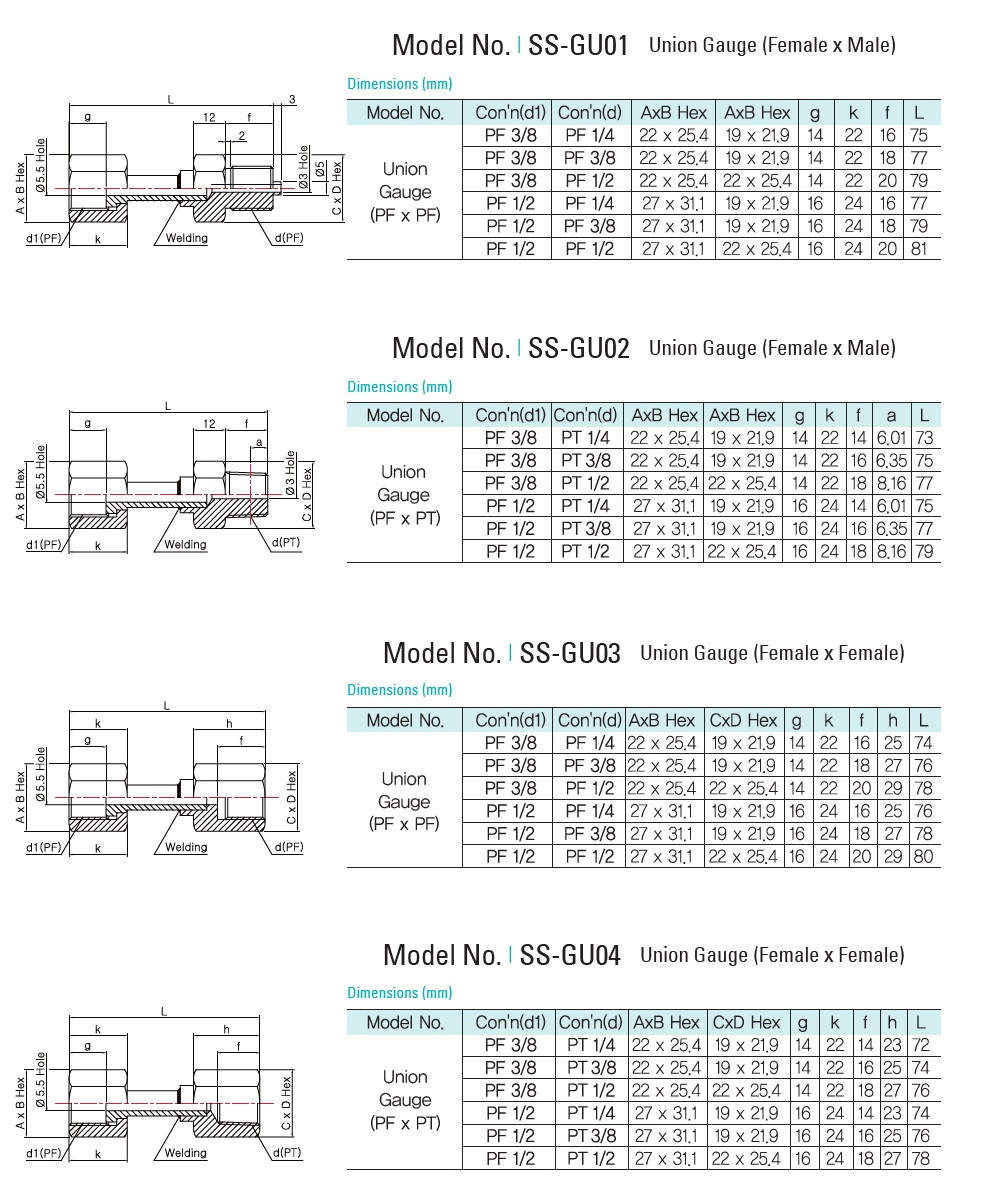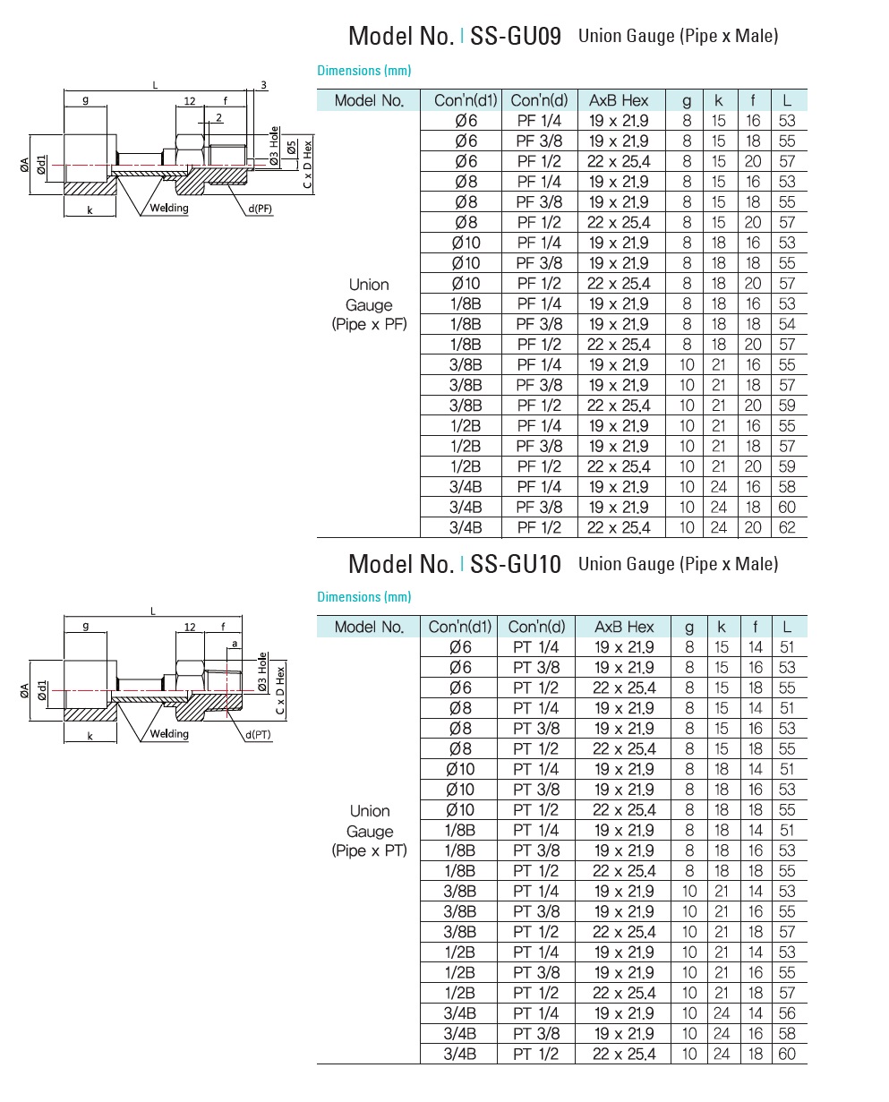 어댑터 & 유니온 게이지 SS-AD/UG Series는 종류나 직경이 다른 나사 또는 파이프 접속용으로도 사용되며 작용하는 측과 계기 측의 나사 규격이 다를 경우의 접속 등 그 크기 및 용도에 따라 여러 가지가 있습니다. 액세서리는 계기의 선택과 정확한 설치, 사용 방법에 따라 압력계의 성능과 수명이 좌우 되므로 압력계의 설치에 앞서 사용 목적에 적당한 액세서리로 선정하는 것이 매우 중요합니다.