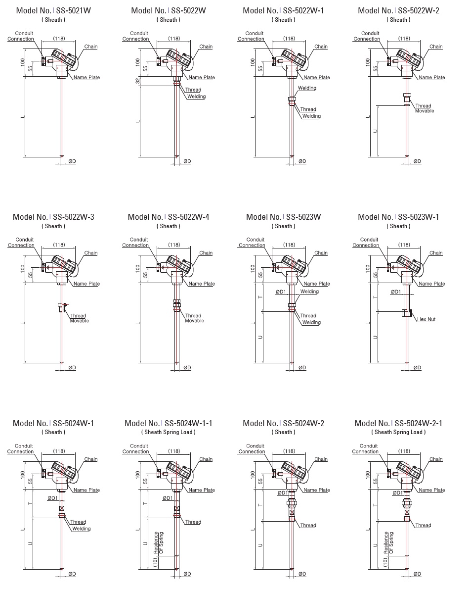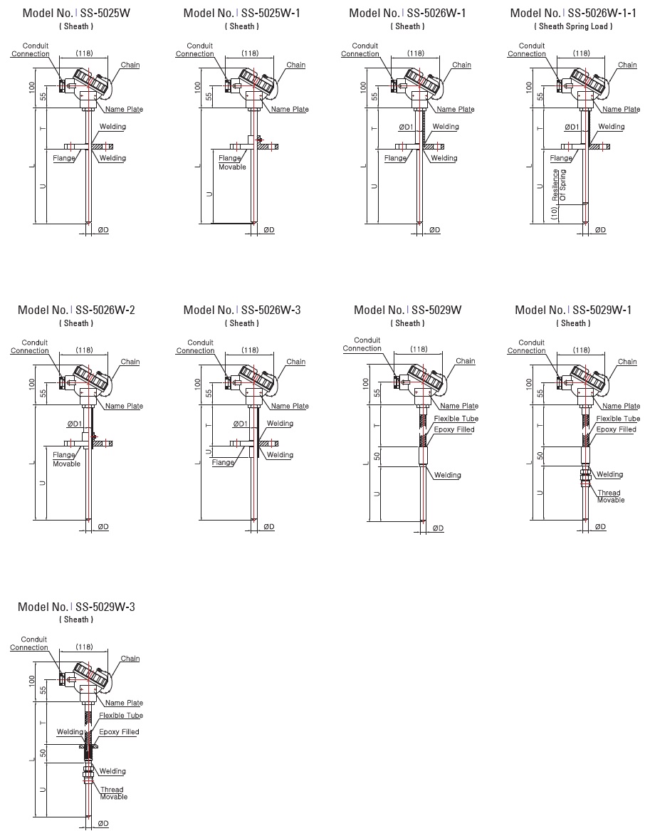 외경이 가늘어서 작은 측정물의 온도도 측정이 가능하며 또한 씨즈형의 구조로 되어 있어 고온 고압에 강하며 -200˚C ~ 2600˚C 까지의 폭넓은 온도범위에 사용가능하다.