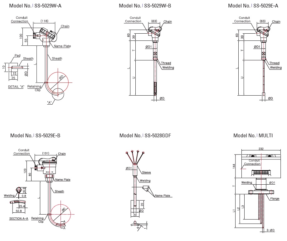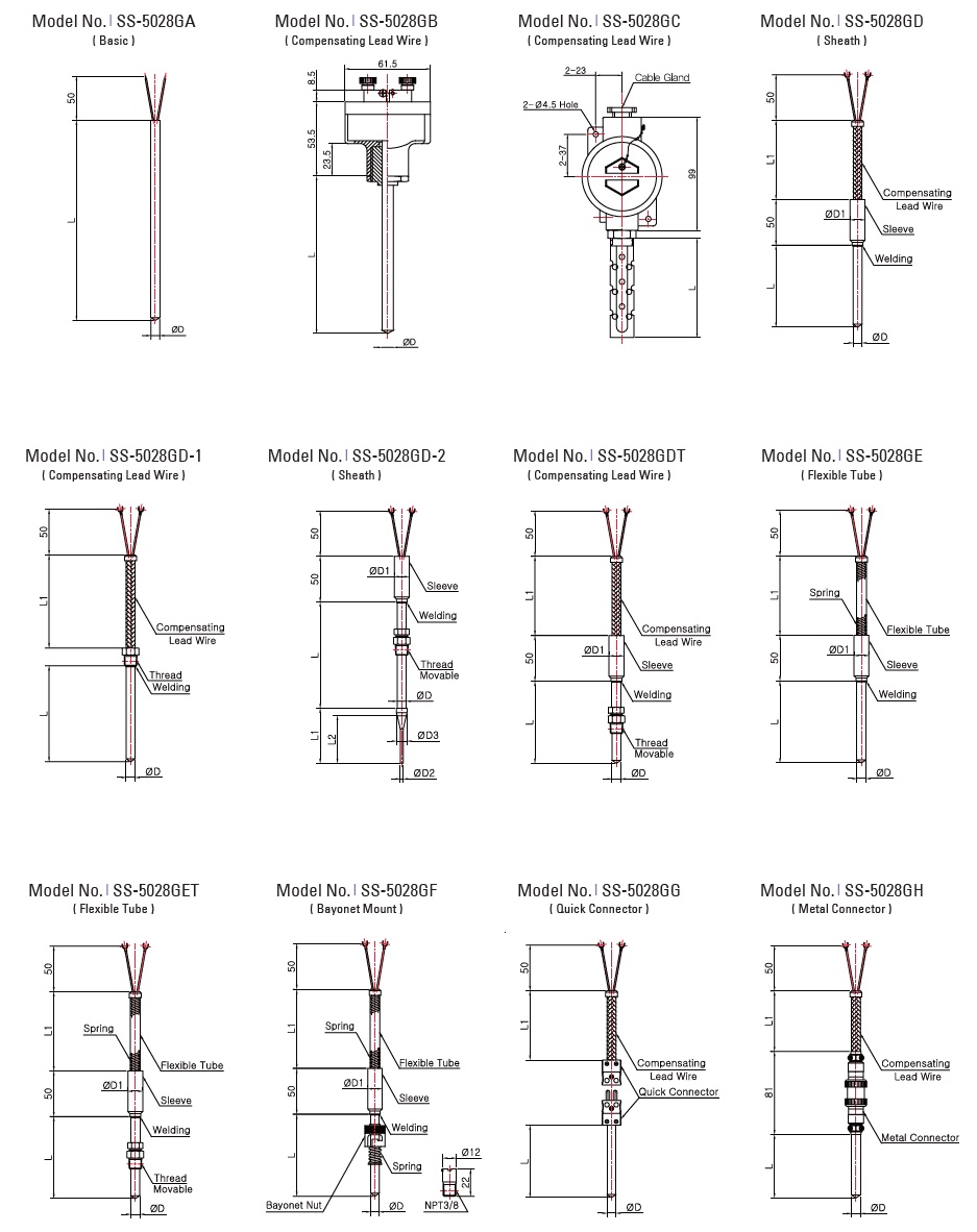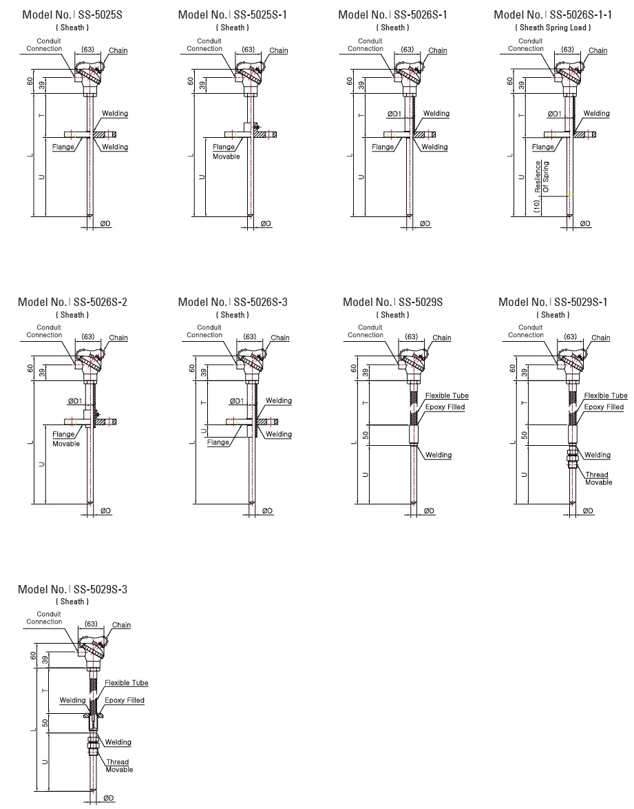 열전대 SS-5020 Series 란, 종류가 다른 금속선 두개의 양끝단을 접속하여 만든것으로 이 양긑단 접점에 온도차가 발생할 때 이폐회로에 열기전력이 발생하여 회로에 전류가 흐릅니다. 이 열기전력의 크기와 극성은 양단의 온도와 두개의 금속선의 조합에 의해 결정되며 금속선의 굵기 또는 길이에영향을 받지 않습니다. 따라서 특정 열전대의 온도에 따른 열기전력을 미리 읽을 수 있으므로 온도 측정이 가능합니다. 이 열전대는 온도측정범위, 측정 장소의 상황, 필요로 하는 정밀도 등에 따라 적당한 소선을 선택하여야 함은 물론, 장시간 연속 사용 할 때에도 항상 같은 성능을 발휘하여야 합니다. 당사에서는 국제규겨의 B,R,S,N,K,E,J,T 및 G,C,D 타입의 열전대도 제작하고 있으므로 사용 목적에 따라 선택하여 주십시요.