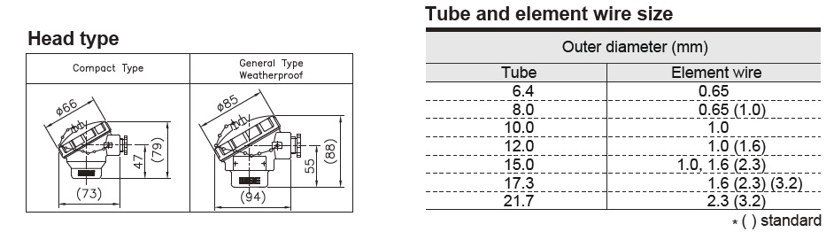 316SS (Not available compact type) Tolerances on temperature reading Class 2 (DIN/IEC584-2, BS/EN60584-2, JIS C1602)