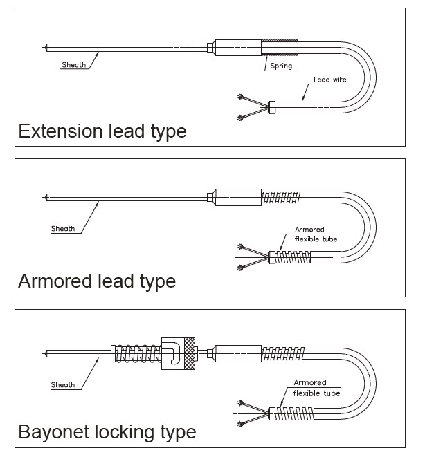 제품 개요 온도 센서 R300이 유형의 감지기는 단자 헤드를 사용하지 않고 표시기나 송신기에 직접 연결합니다. 측정부와 헤드 사이의 거리가 너무 먼 경우 매우 유용합니다. 측정부와 헤드는 연장선을 사용하여 연결할 수 있습니다. 연장선은 설치 장소의 조건, 외장 튜브의 보호 형태,그리고 전선 피복 재질에 따라 선택할 수 있습니다. Element Thermocouple : K, E, J, T, N, R, S, B