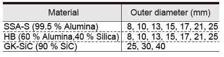 "R", "S" and "B" type : 0.5 mm Protecting tube material and outer diameter